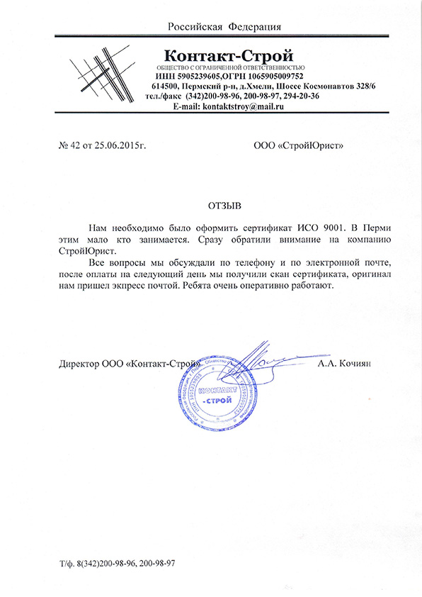 Отзывы клиентов "СтройЮрист" по ISO в Петрозаводске