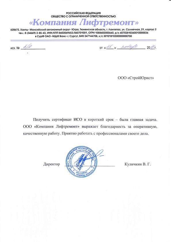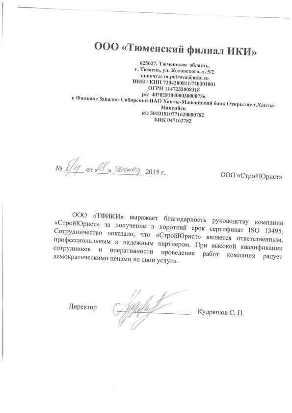 Отзывы клиентов "СтройЮрист" по ISO в Петрозаводске