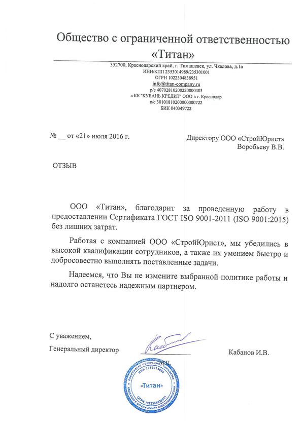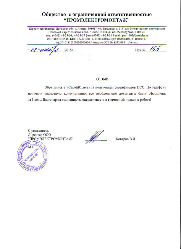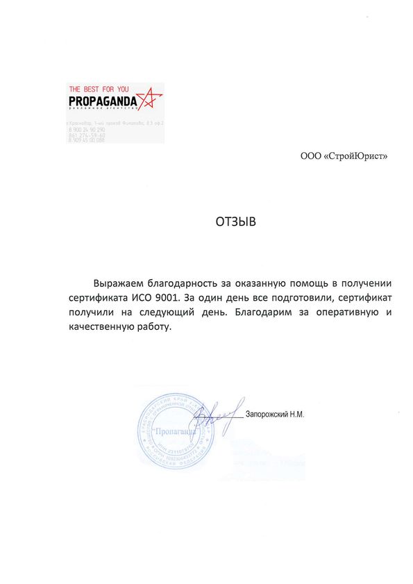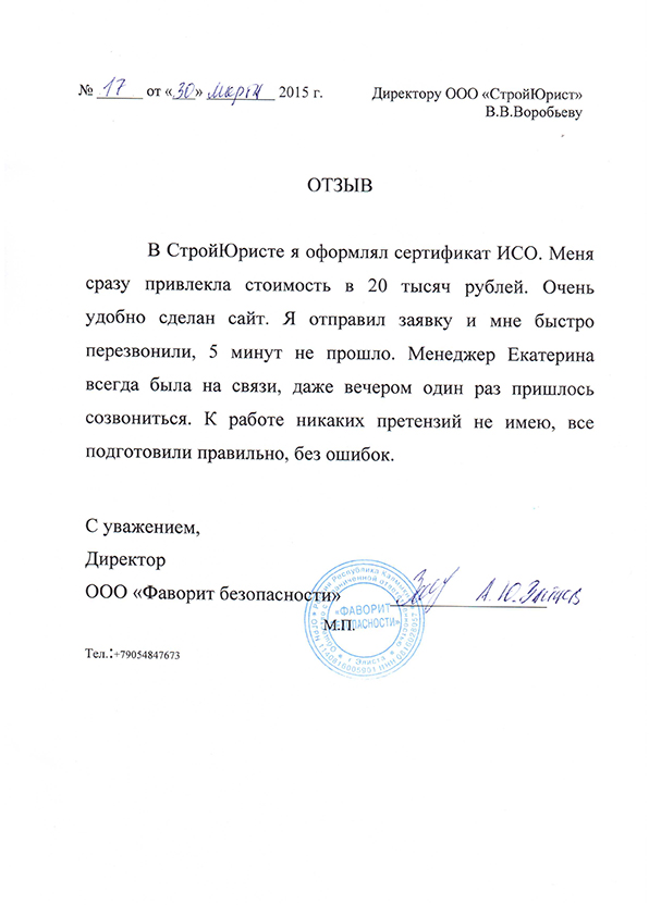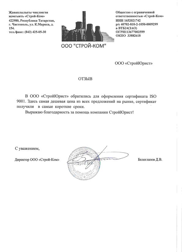 Отзывы клиентов "СтройЮрист" по ISO в Петрозаводске