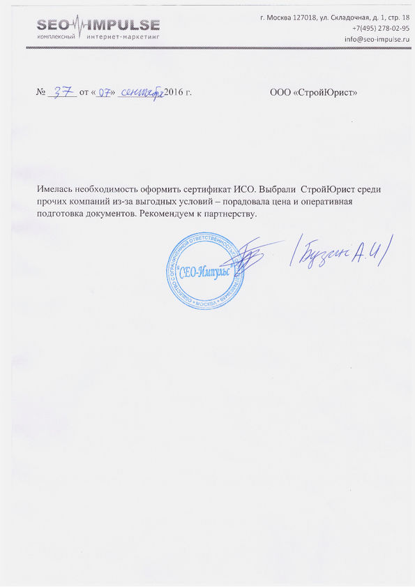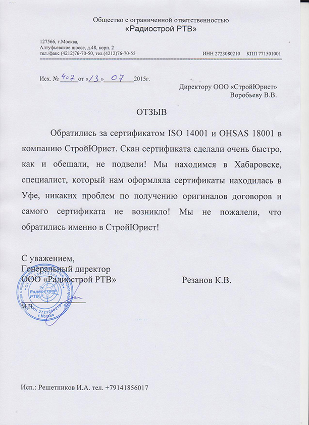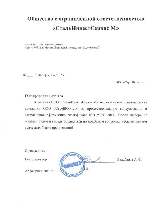 Отзывы клиентов "СтройЮрист" по ISO в Петрозаводске