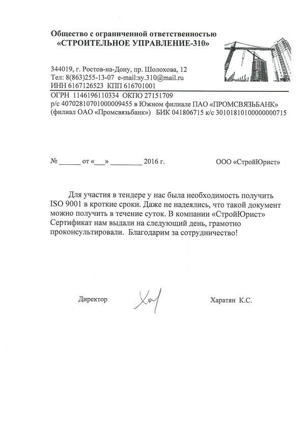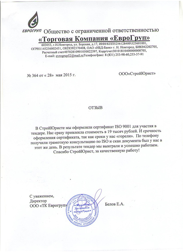 Отзывы клиентов "СтройЮрист" по ISO в Петрозаводске