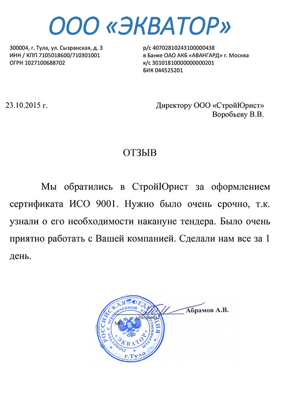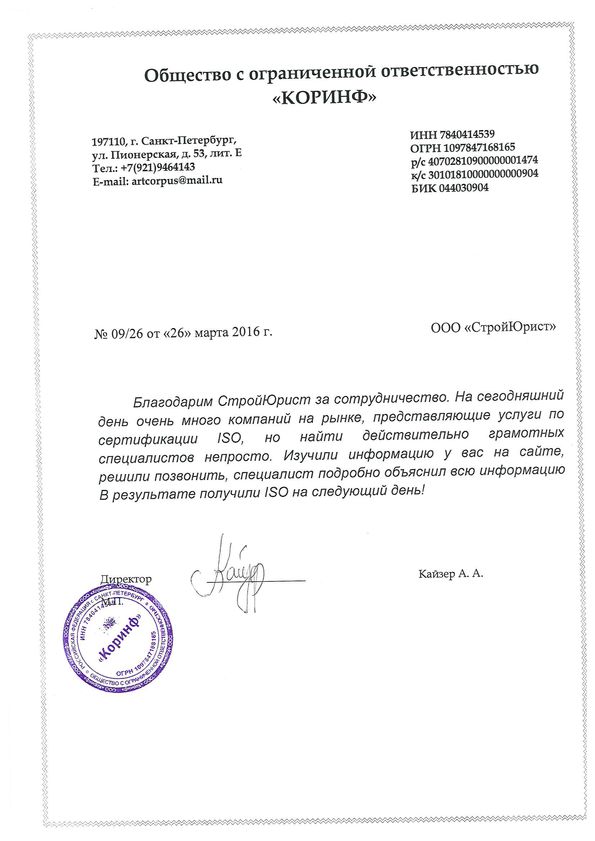 Отзывы клиентов "СтройЮрист" по ISO в Петрозаводске