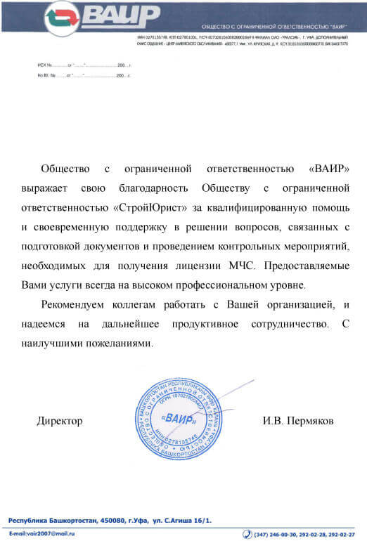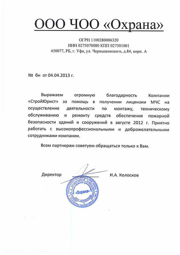 Отзывы клиентов "СтройЮрист" по лицензированию МЧС в Петрозаводске