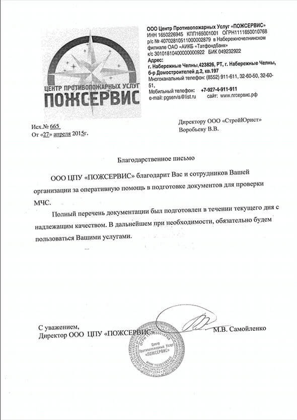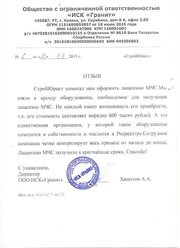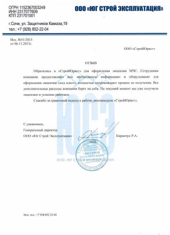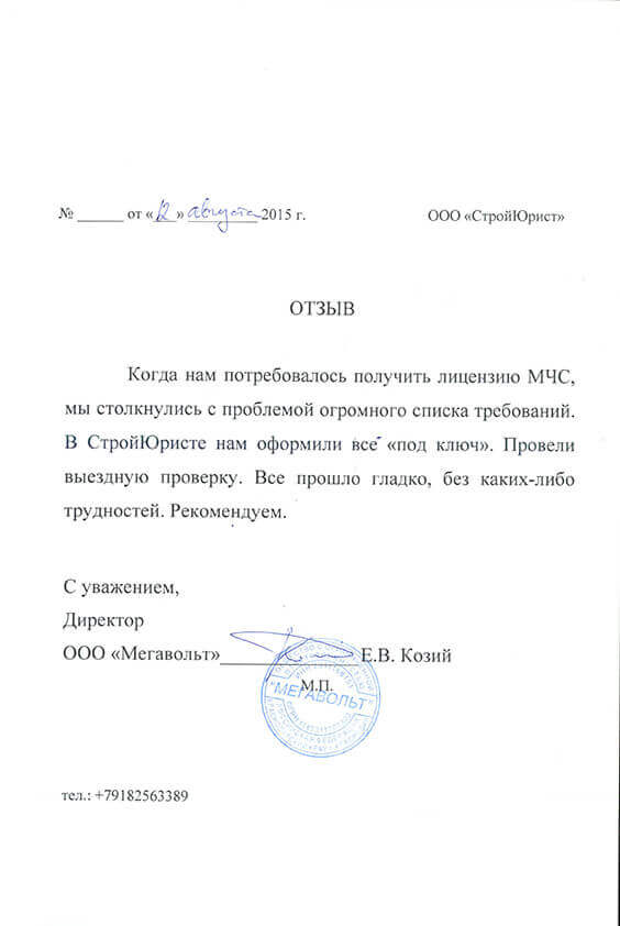 Отзывы клиентов "СтройЮрист" по лицензированию МЧС в Петрозаводске