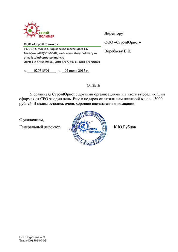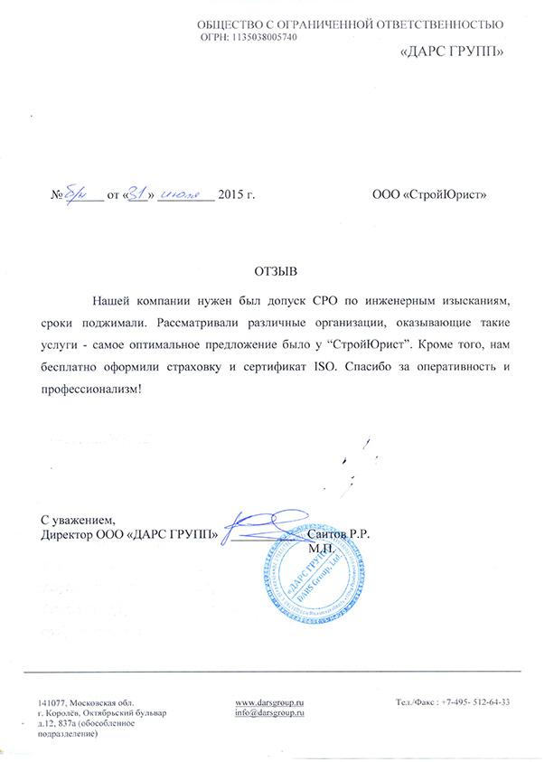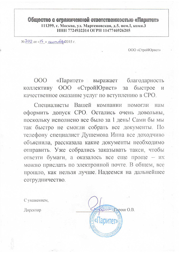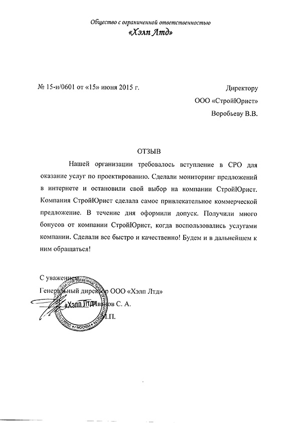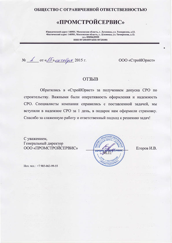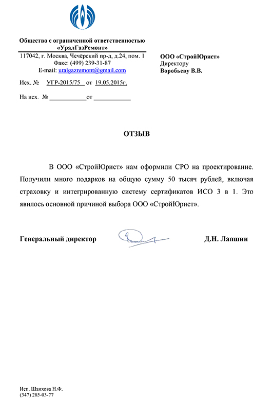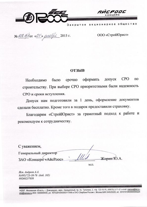 Отзывы клиентов "СтройЮрист" по вступлению в СРО в Петрозаводске