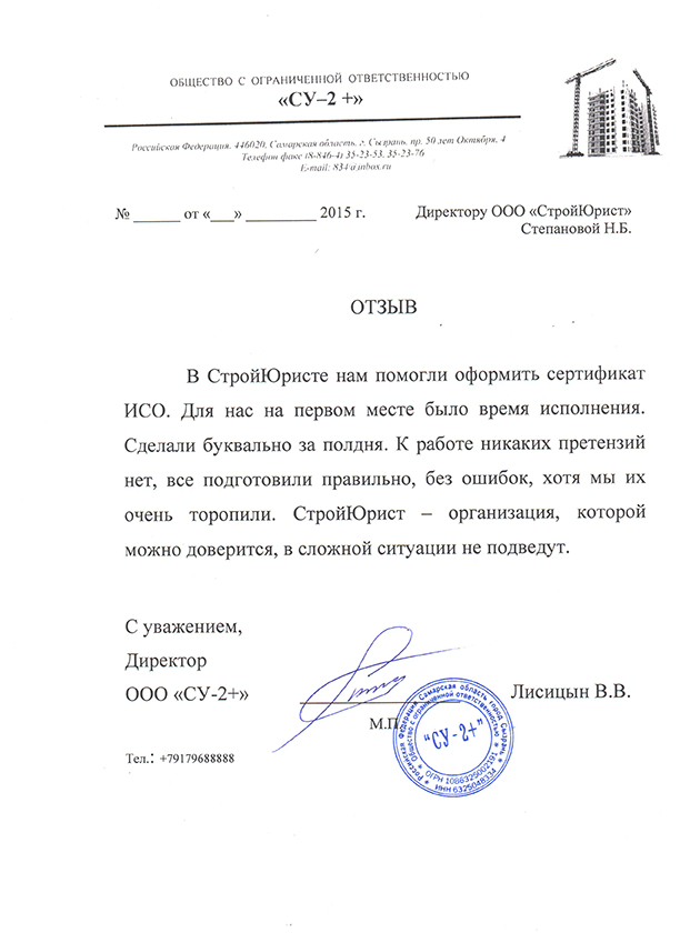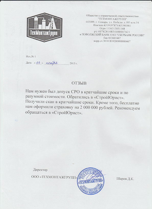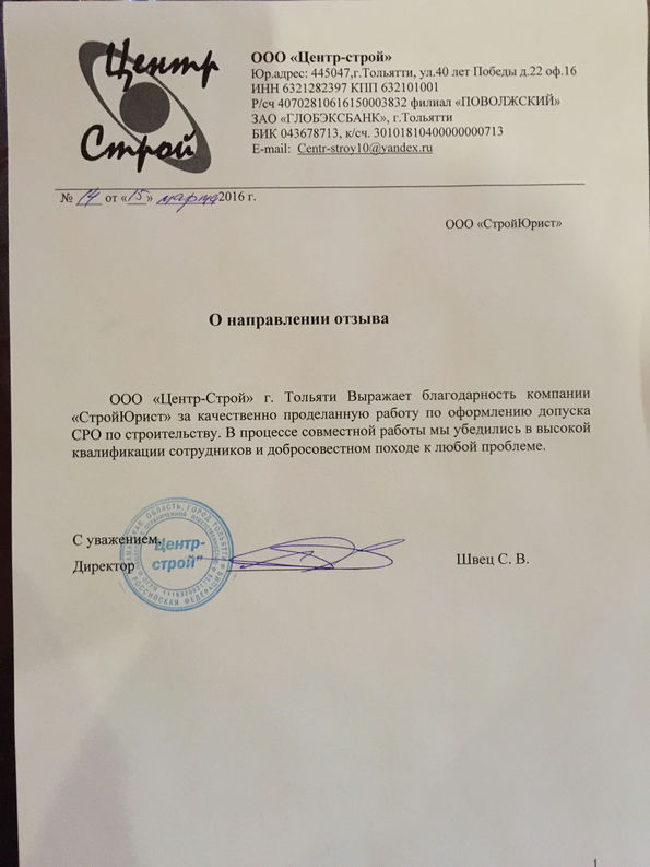 Отзывы клиентов "СтройЮрист" по вступлению в СРО в Петрозаводске