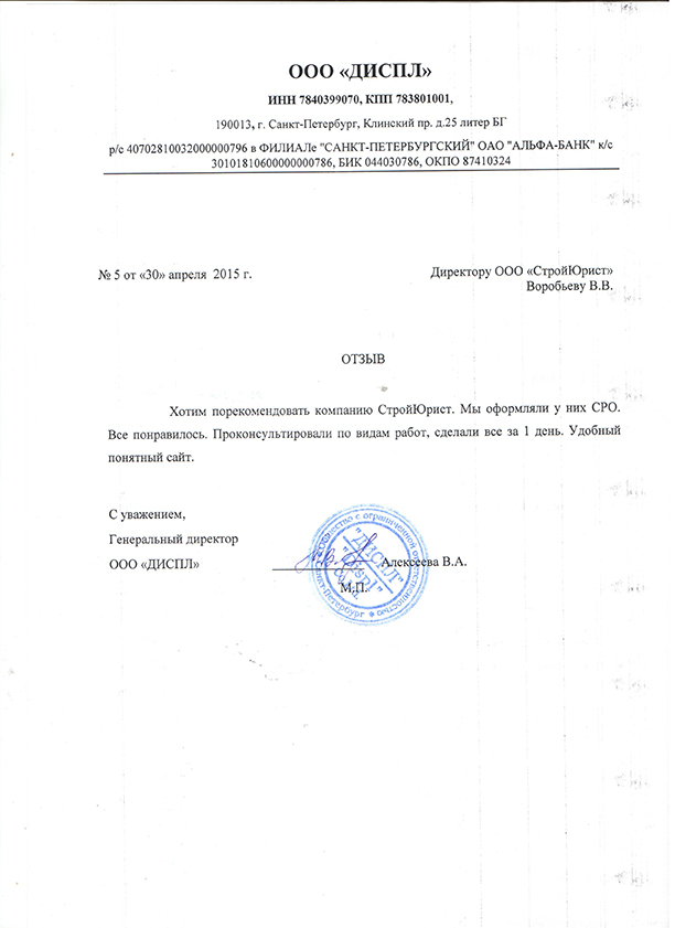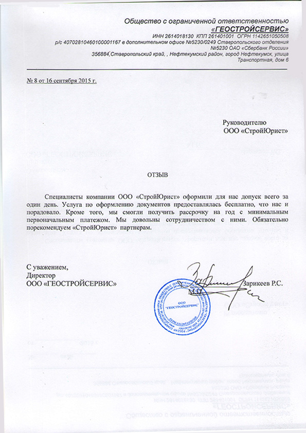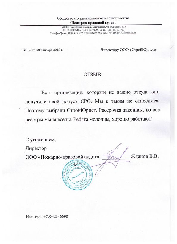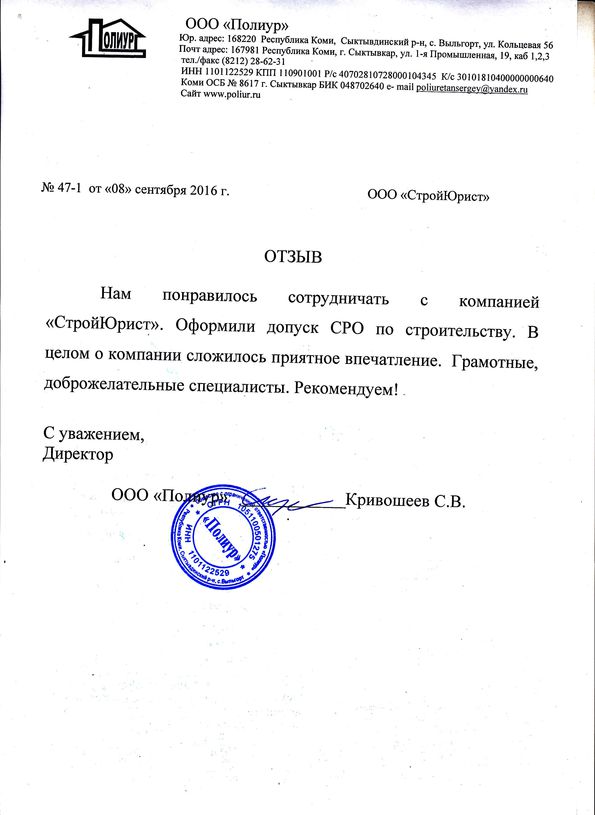 Отзывы клиентов "СтройЮрист" по вступлению в СРО в Петрозаводске