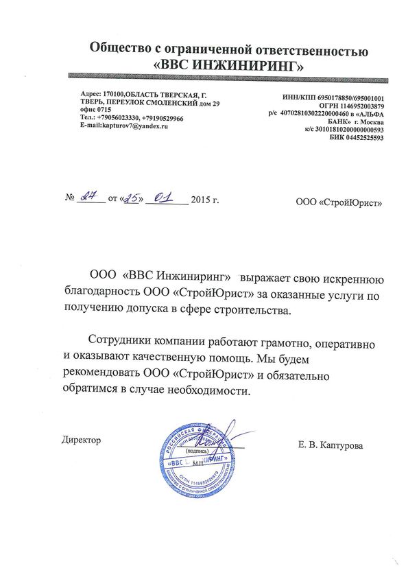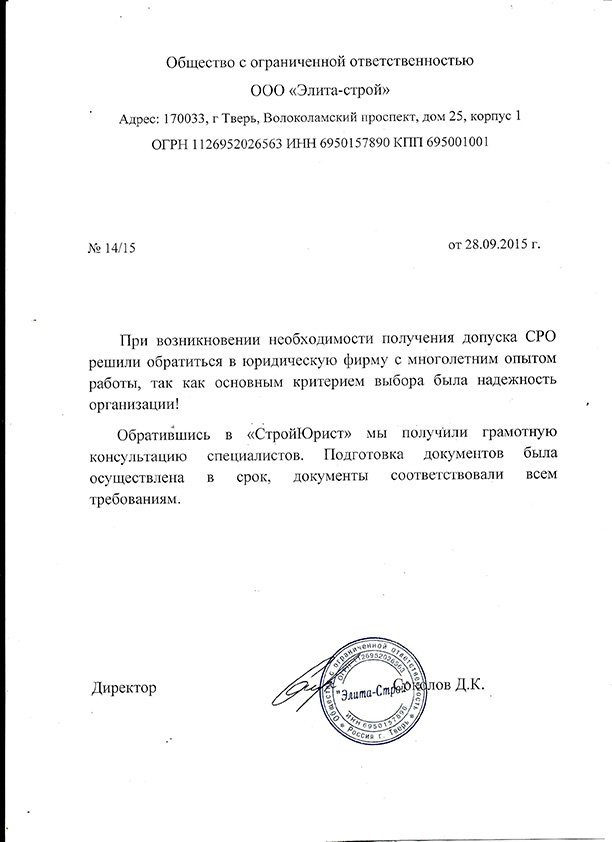 Отзывы клиентов "СтройЮрист" по вступлению в СРО в Петрозаводске