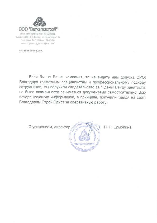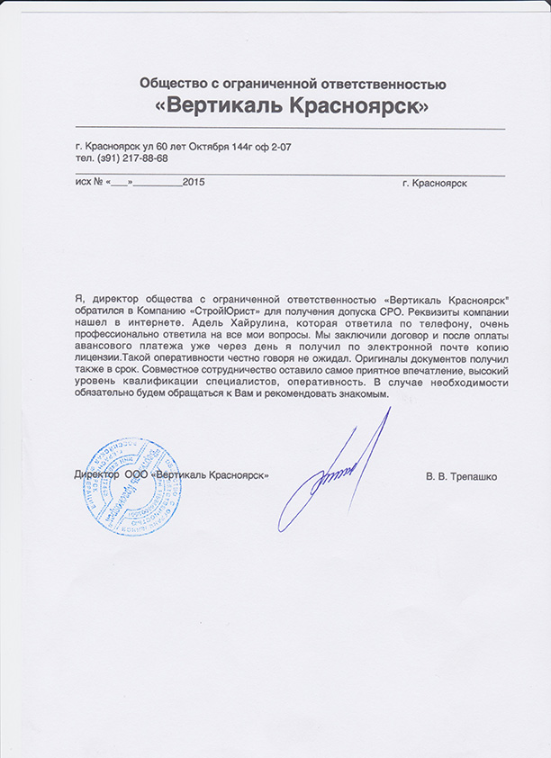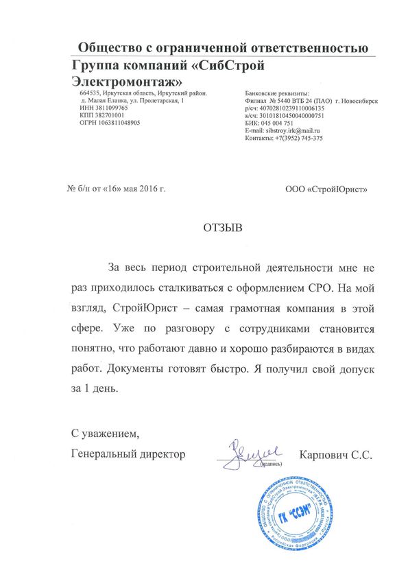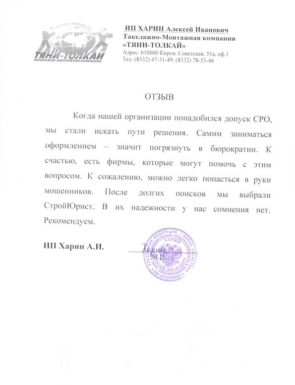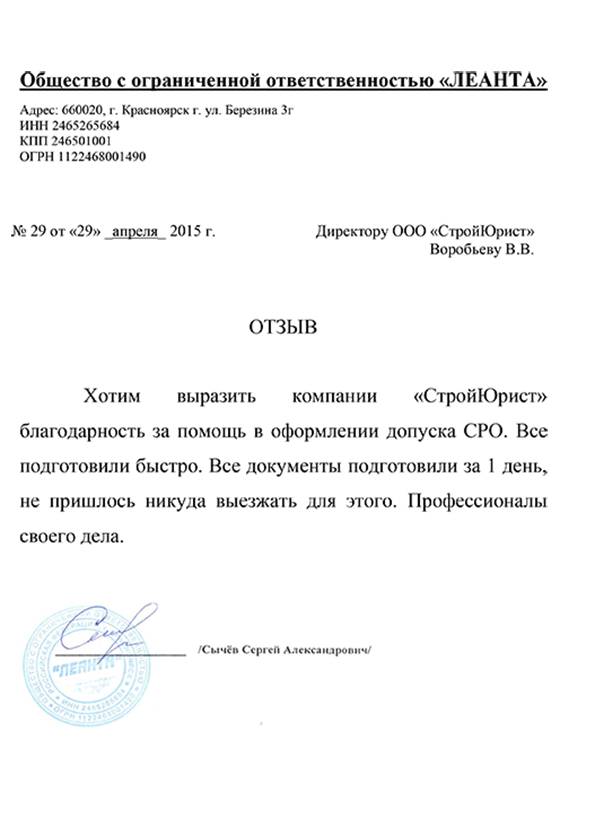 Отзывы клиентов "СтройЮрист" по вступлению в СРО в Петрозаводске