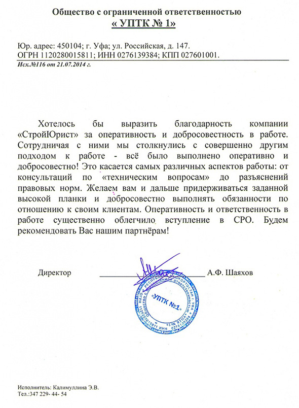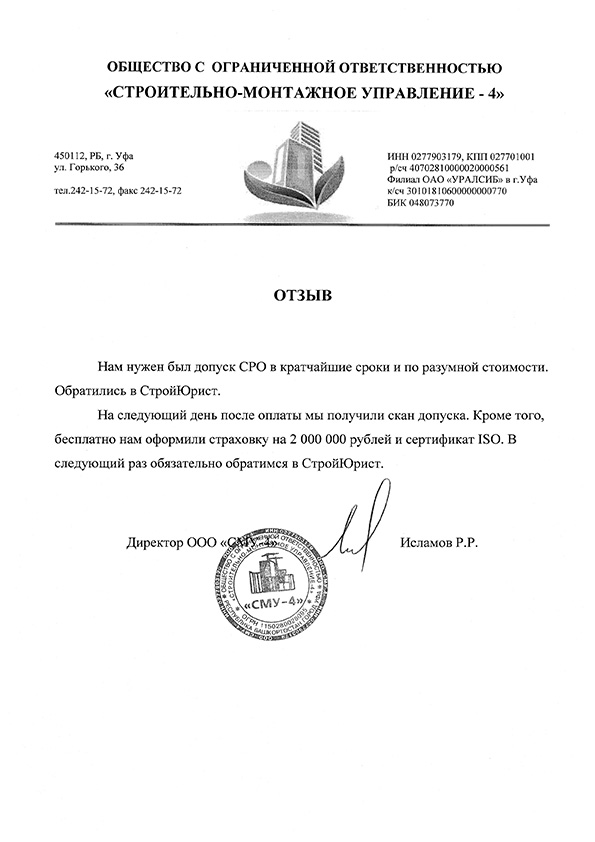 Отзывы клиентов "СтройЮрист" по вступлению в СРО в Петрозаводске