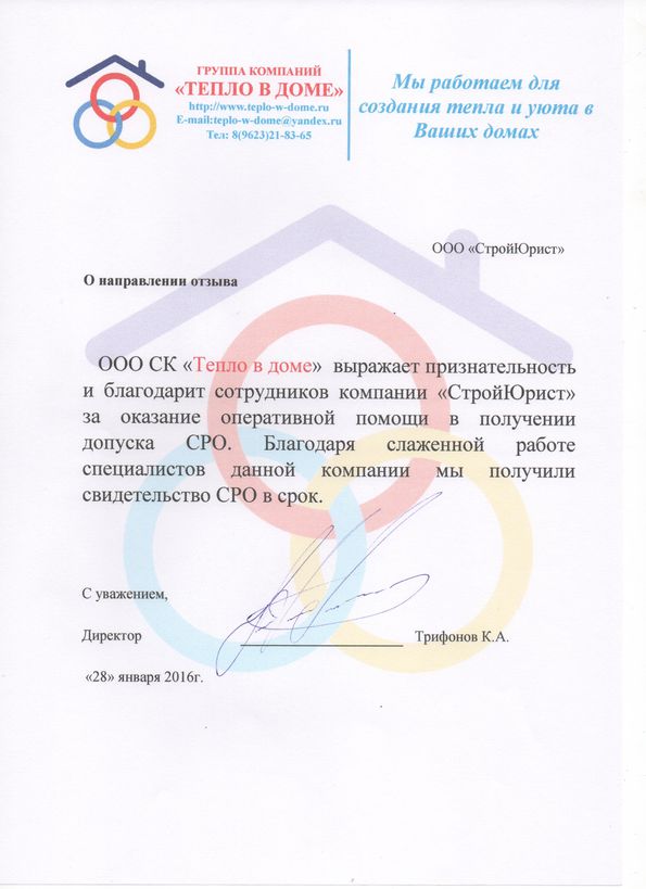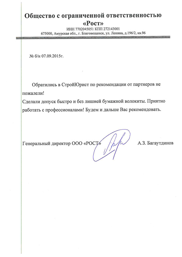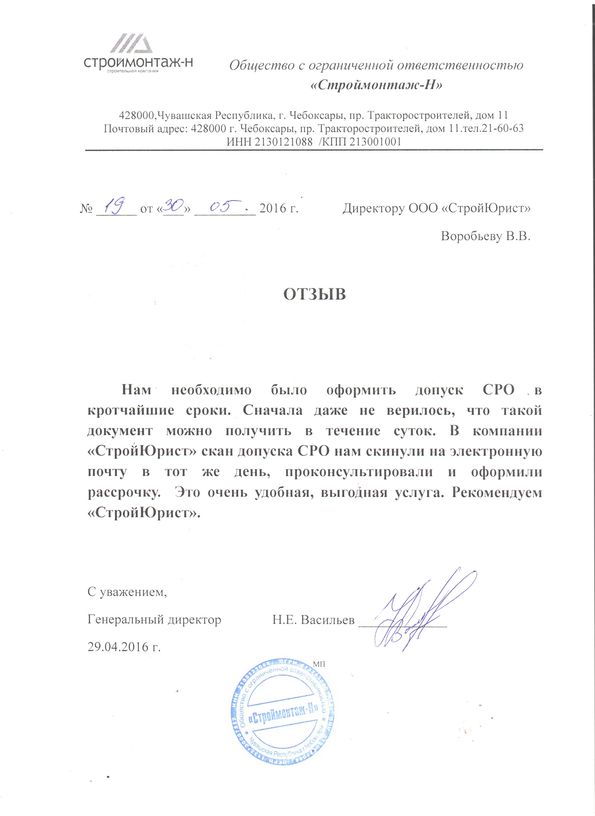 Отзывы клиентов "СтройЮрист" по вступлению в СРО в Петрозаводске