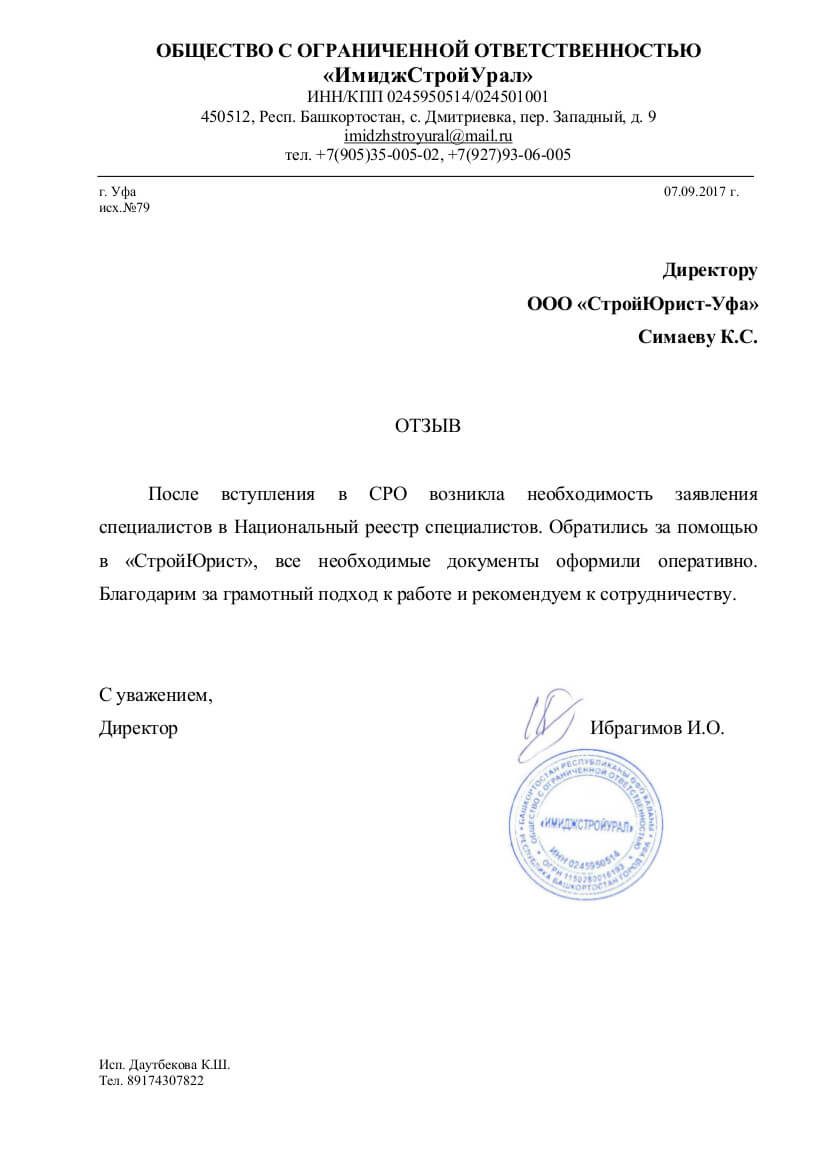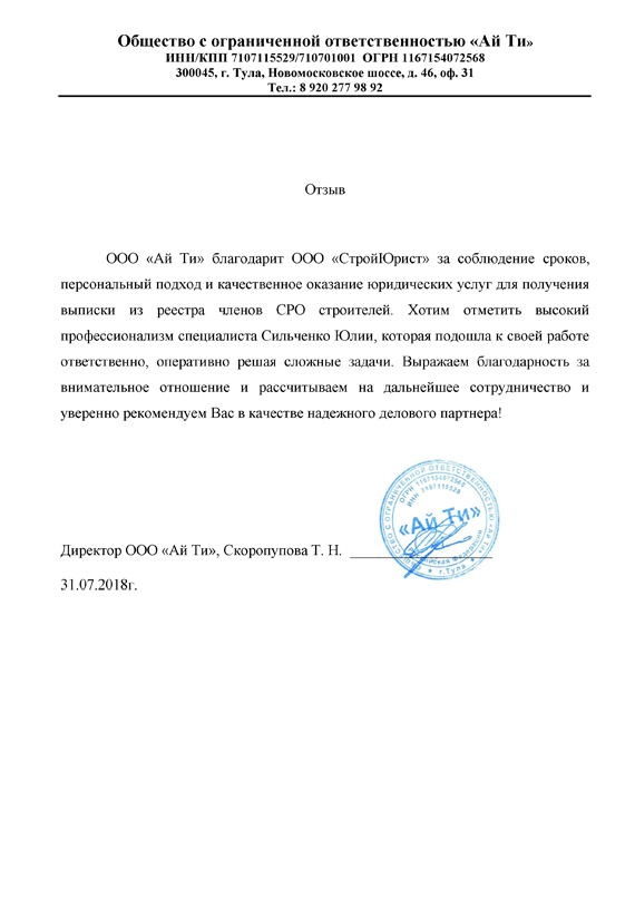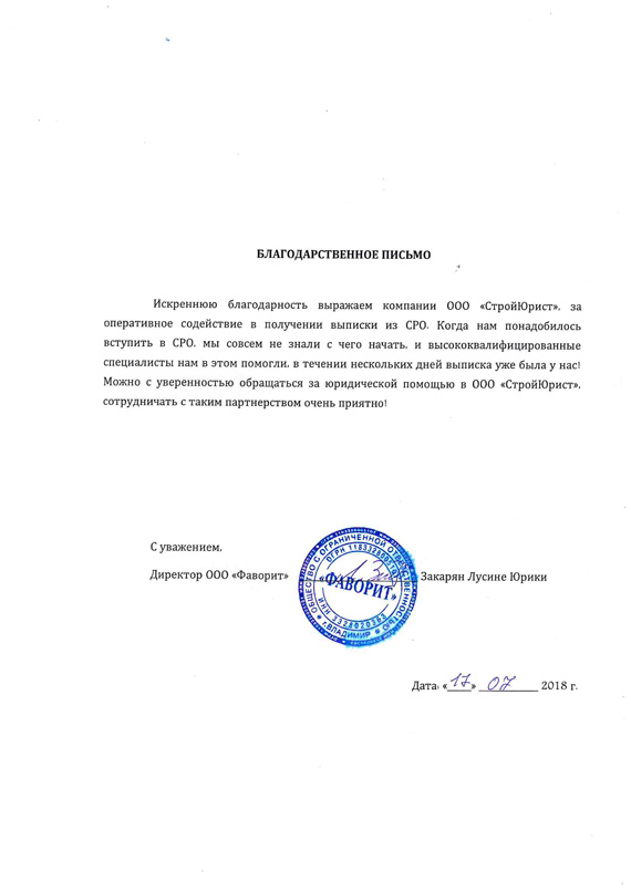 Отзывы клиентов "СтройЮрист" по вступлению в СРО в Петрозаводске